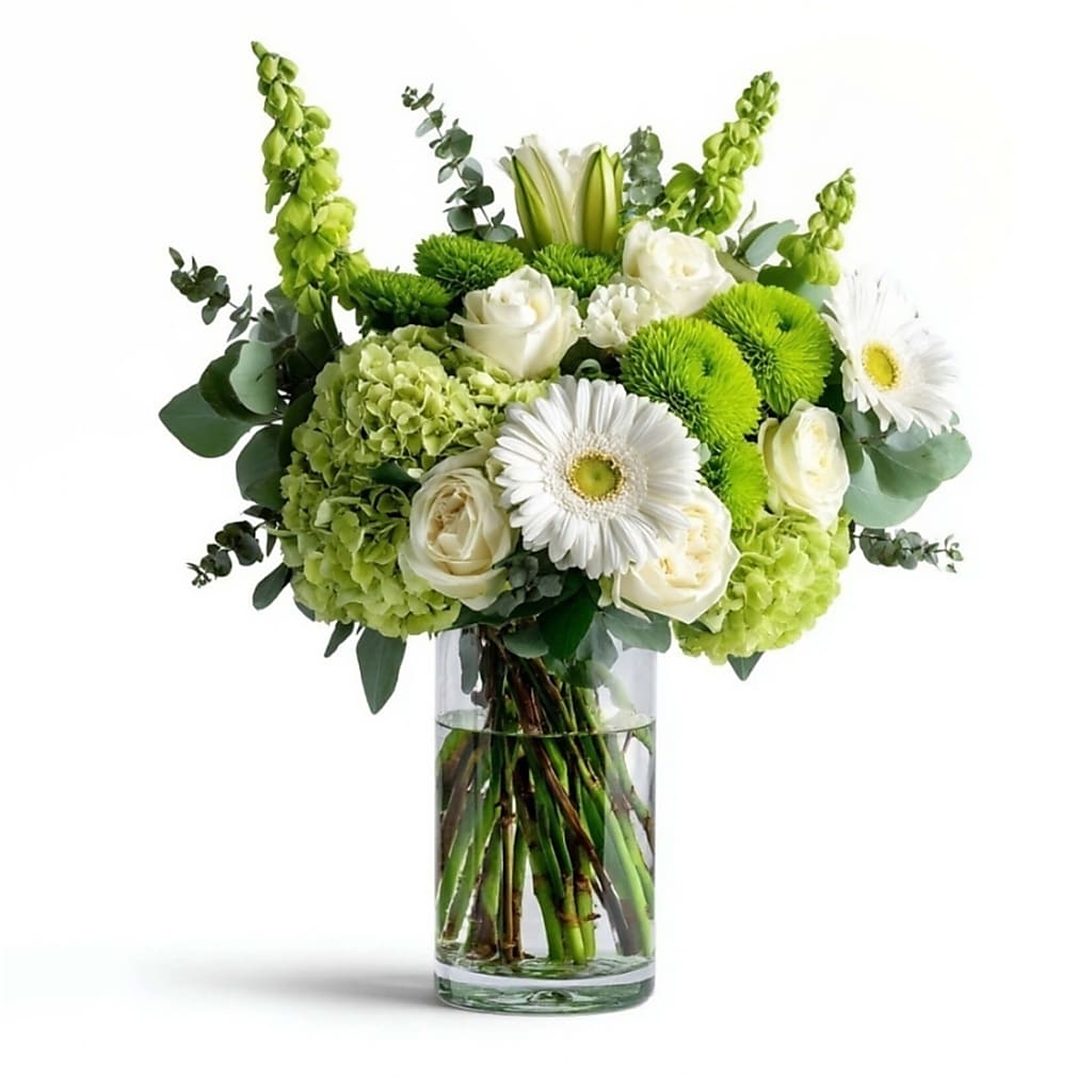 A perfect pick for your St. Paddy's celebration - these blooms blend bright whites and festive greens in a design that feels lucky, loved, and full of joy.